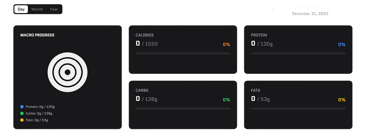 Keep track of the fuel you put in your body with our simple nutrition tracker. Punch in your details manually or use the built in search to find your meal with ease.